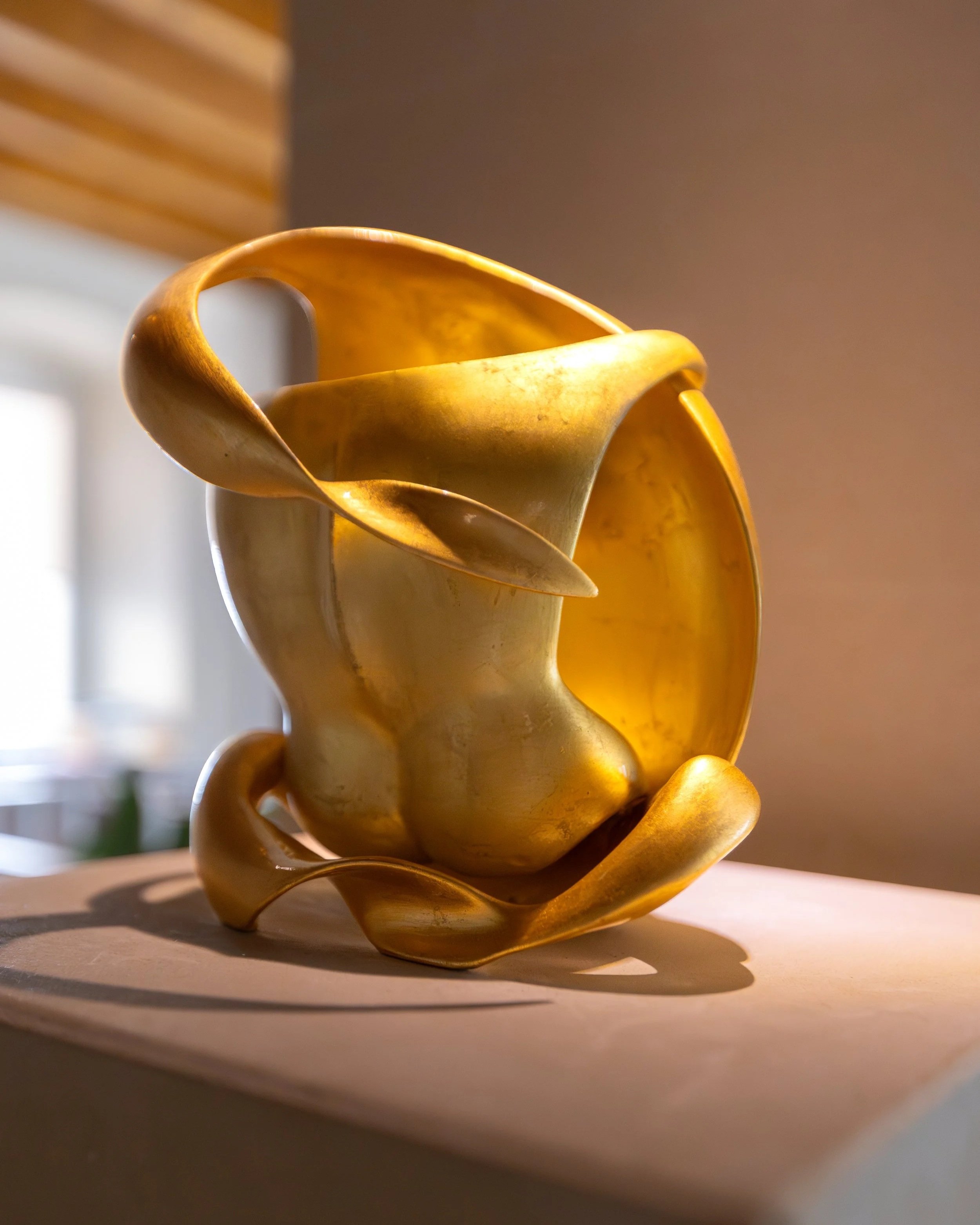 Stereolitografia in polvere di plastica, rivestita con riempitivo in poliestere, vernice acrilica e foglia d'oro (oro rosso 23kt, oro giallo 21kt)